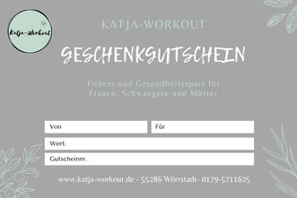 Ihr könnte die Gutscheine gerne unter "Buchungen" erwerben. oder schreibt mir einfach eine Email an Katja-Workout@gmx.de mit folgenden Infos: